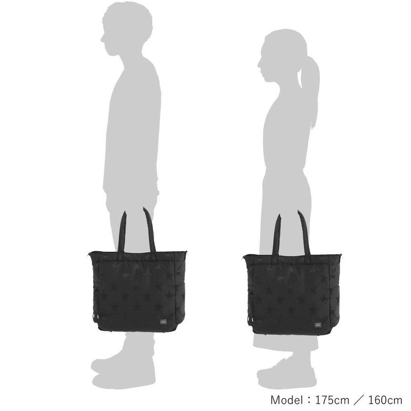 光の角度によって立体的な表情が浮かび上がる星柄とPORTER ロゴを組み合わせたオリジナルの生地は、ブラックワントーンで上品な印象に仕上げています。