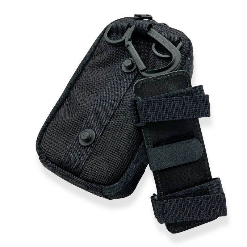 付属のショルダーストラップや他のバッグ、バックパックに取り付けるためのアタッチメント、カラビナを装備し様々な使い方が可能です。