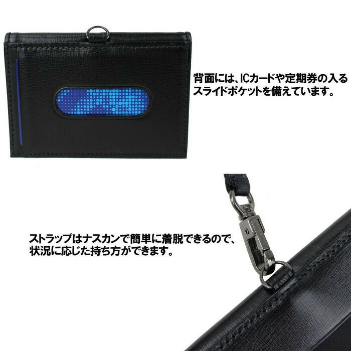 □サイズ:W105/H75mm □重量:60g □素材:表:牛キップ(コンビネーション鞣し) 裏:ナイロンサテン(裏面:アクリルコーティング) 付属:牛ステア(コンビネーション鞣し) □仕様:【メイン】クリアポケット×1、カードポケット×2 【背面】フリーポケット×1 【ストラップ長さ】約87cm