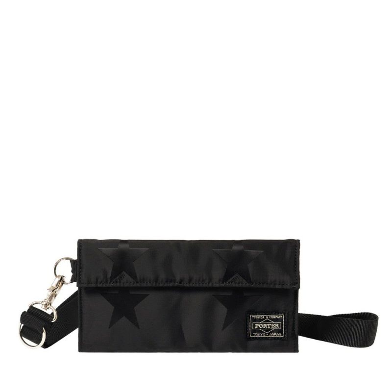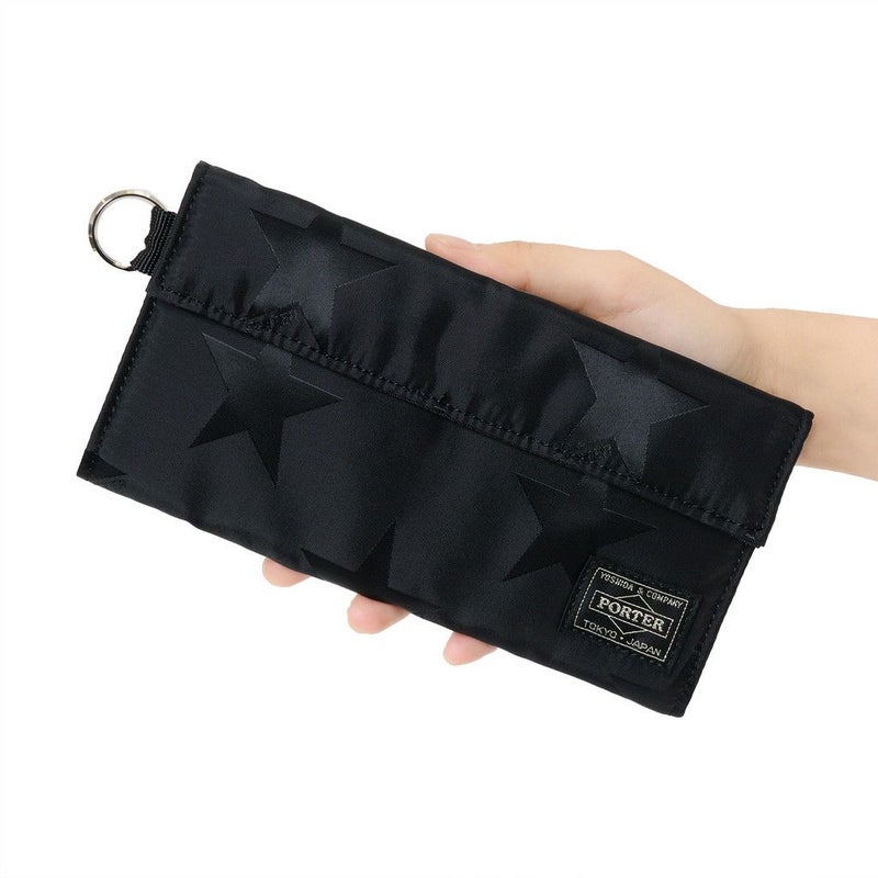 光の角度によって立体的な表情が浮かび上がる星柄とPORTER ロゴを組み合わせたオリジナルの生地は、ブラックワントーンで上品な印象に仕上げています。