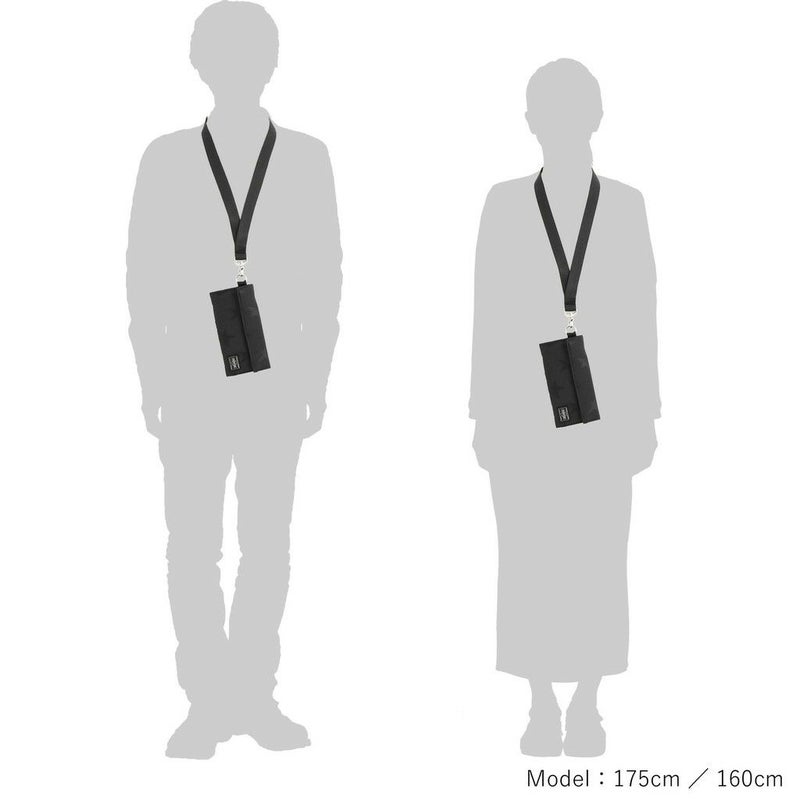 紙幣やカードが見やすく、整理・収納がしやすい仕様です。取り外し可能なストラップが付属し、首からかけて使用できます。