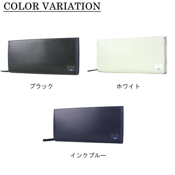 グラデーションステッチを効かせた、落ち着いた小物シリーズ。 本体にはガラス革のタンナーで、日本随一の腕を持つ職人が手掛けたガラス革に、目の細かい水シボの型押しを施し、艶で奥行を出した素材を使用。 シンプルながらも、サイドに並んだ三本のブルーのステッチはグラデーションになっており、ランバンオンブルーらしいさりげない遊び心が表現されています。