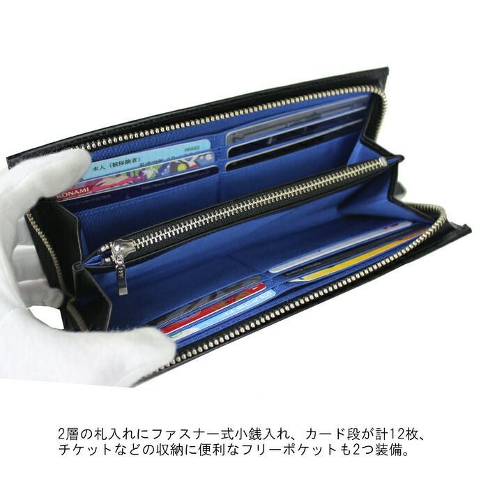 □サイズ:約W200/H95/25mm ※サイズは当店計測サイズとなります。 商品により、若干の個体差が生じます。 ※サイズの表記について □重量:180g □素材:牛革 □仕様:【メイン】札入れ×2、ファスナー式小銭入れ×1、カードポケット×12、フリーポケット×2 【付属品】オリジナルBOX