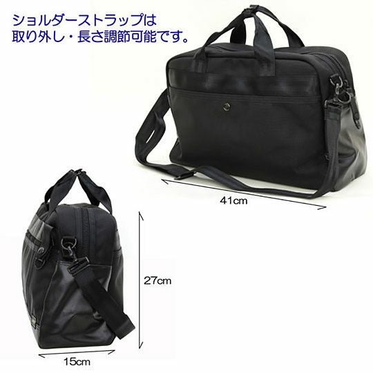 ボストンの背面には、スナップ留めのポケットがついているので、雑誌や書類などの収納に便利です。強靭な素材なので、ハードな使用にもOKです。