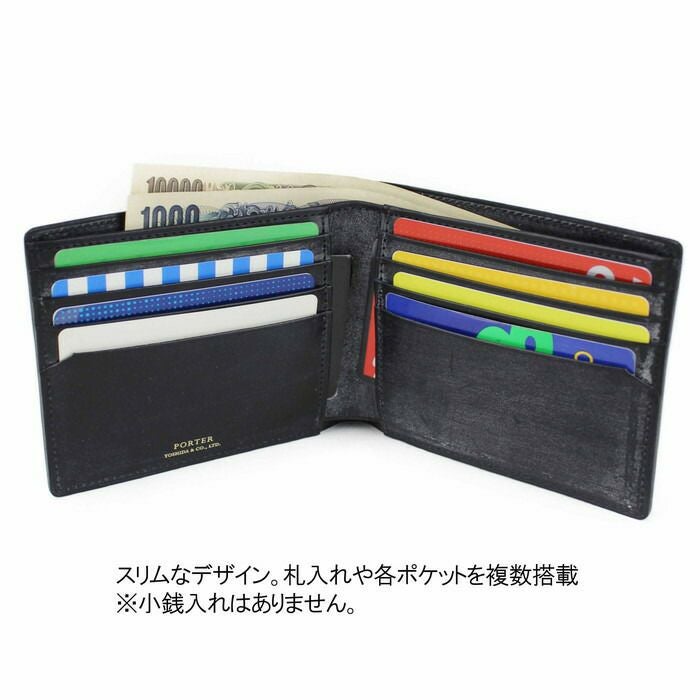 □サイズ:W112/H90mm □重量:75g □素材:表:ブライドルレザー(イギリス輸入革・タンニン鞣し) 裏:牛ステア(コンビネーション鞣し) 仕様:札入れ×2(カードポケット×2)、カードポケット×8、フリーポケット×2 【付属品】PORTERオリジナル収納袋&BOX ※小銭入れはありません。