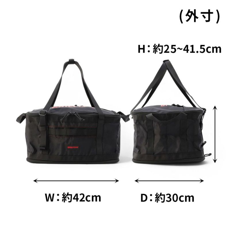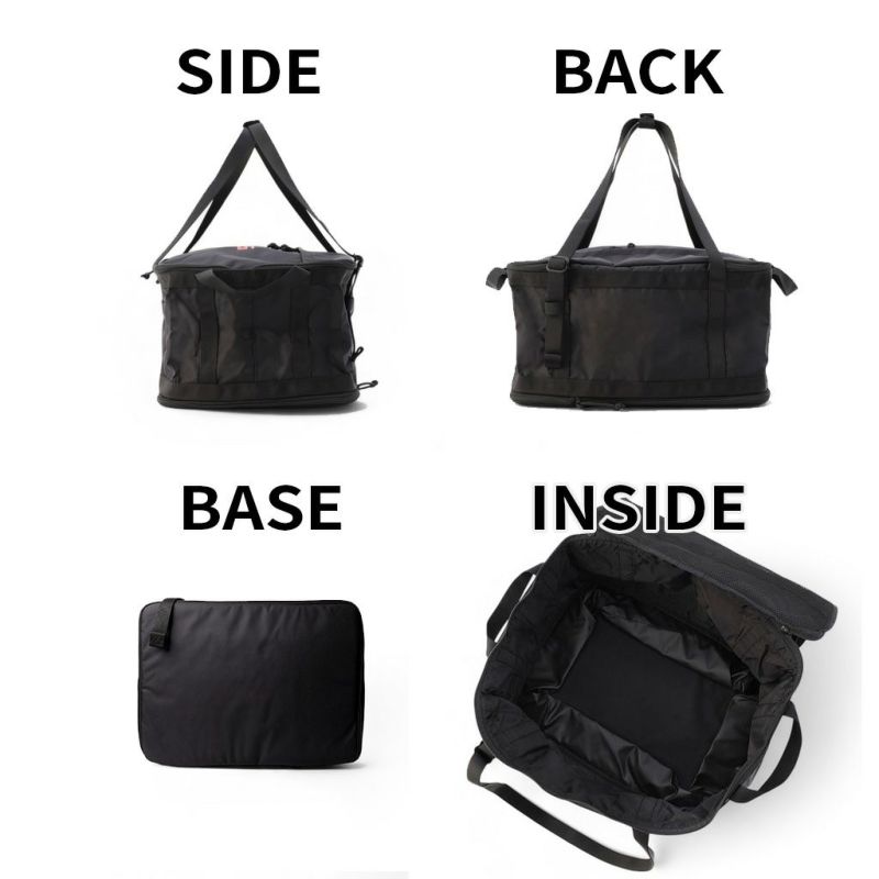 収納する荷物の容量や大きさに応じて、2段階に高さを変えることが可能な大容量バッグ。 車の積み込みに配慮したハンドルや長さ調節可能な持ち手を完備し、嵩張るキャンプグッズをまとめて持ち運ぶのに便利。インテリアも兼ねた保管ツールとしても優秀です。
