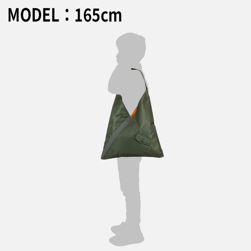 肩掛けのしやすさやMA-1のディテールを落とし込んだデザインはそのままに容量をアップ。