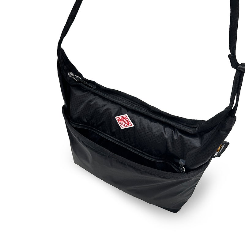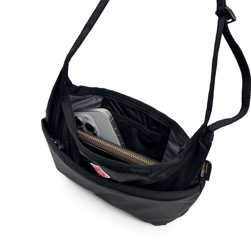 使い勝手の良いコンパクトサイズのサコッシュ。内ポケットに本体を収納できるパッカブル仕様です。
