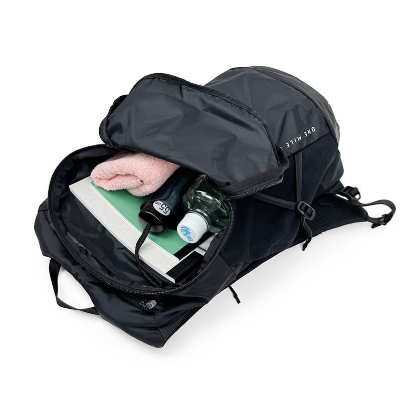 「走れるデイパック」をコンセプトに、ワークアウトからタウンユースまで幅広いシーンを想定して開発したテクニカルデイパックです。 メイン素材の一部に70デニールのリサイクルリップストップナイロンを使用し、強度が必要な箇所には100デニールのリップストップナイロンを採用。ランニングシーンのバックパックの揺れを抑えるため、ショルダーハーネスはベスト型に近いデザインで、体との一体感を高めています。フィット感を高められるチェストストラップは、胸への当たりを軽減するテープ式レールを採用。 必要十分な1日分の荷物を収納できる容量16Lのファスナー式メインコンパートメントには、13インチ対応PCスリーブを内蔵。左ショルダーハーネス片側には、スマートフォンの収納に便利なファスナーポケットを装備。 軽量でシンプルさを追求し、しっかりと体にフィットする形状に仕上げているため、アクティブな日常のさまざまなシーンで活用できます。