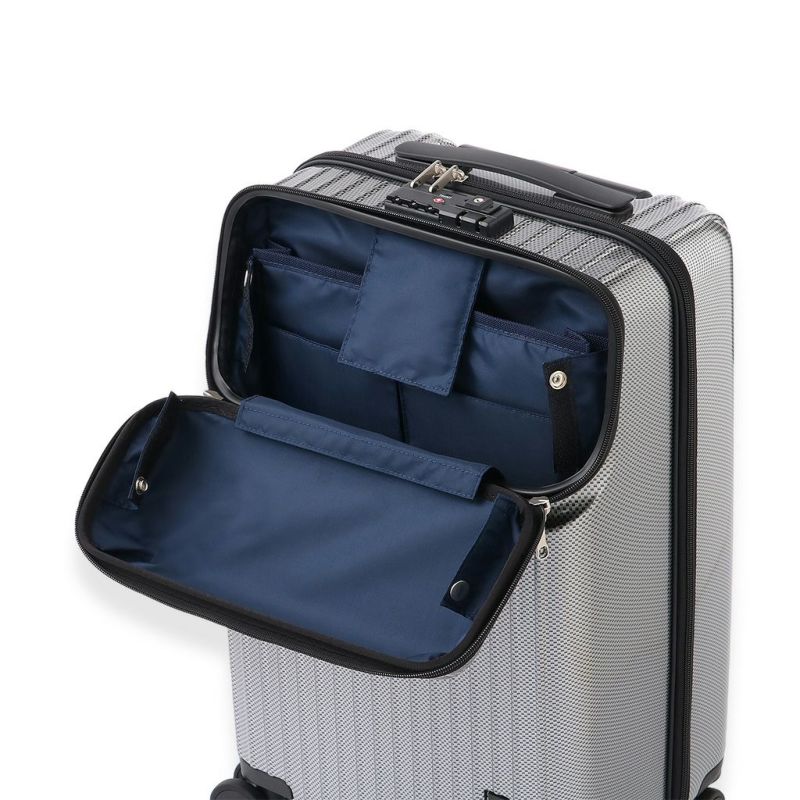【 外側上部 】TSAダイヤル式ファスナーロック(3ケタのダイヤル式)、ハンドル×1、プルドライブハンドル(4段階に調節可能)