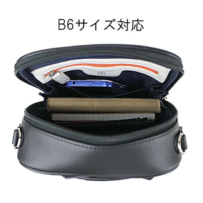 □サイズ:約W180/H230/D60mm ※サイズは当店計測サイズとなります。 商品により、若干の個体差が生じます。 ※サイズの表記について □重量:約560g □素材:ポリ塩化ビニル □仕様:【メインB6サイズ】ファスナーポケット(小物)×1、オープンポケット(A6)×1 【前面】ファスナーポケット(A6)×1[カードポケット×5、オープンポケット(小物)×1] 【背面】マグネットボタン留めポケット(B7)×1 【ハンドル】長さ約29cm、高さ約9cm※着脱可能 【ショルダーベルト】長さ約79~138cm※着脱可能