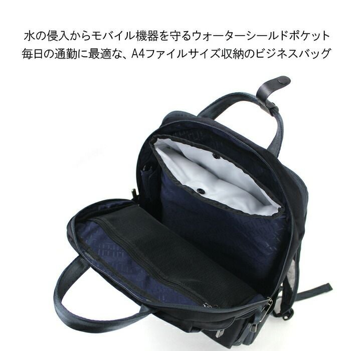 ウォーターシールドポケットとファスナープラーガードを備え、「水」と「盗難」ふたつのリスクに対するシールド機能をあわせ持つバックパックシリーズ。 強度を保ちつつ、毎日の通勤から出張まで対応できる使いやすさと、撥水加工と熱融着加工で突然の雨などにも対応。 無駄な装飾を省いたシンプルなデザインなので、スーツスタイルとの相性も抜群です。