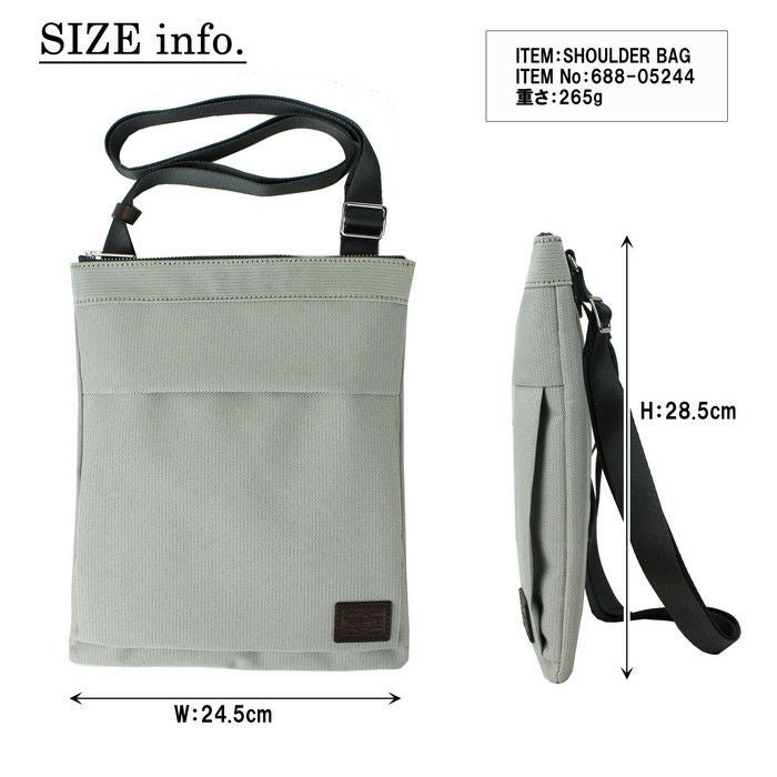 □サイズ:W245/H285mm □重量:265g □素材:表:ポリエステルジャガード(裏面:PVC加工)、裏:ナイロンオックス(裏面:ウレタンコーティング)、付属:牛ステア(タンニン鞣し) □仕様:【メイン:B5サイズ】ボタン留めポケット(B6サイズ)×1、オープンポケット(B7サイズ)×2 【外側前面】ボタンかぶせポケット(B6サイズ)×1 【ショルダーベルト】約71~135cm、着脱不可