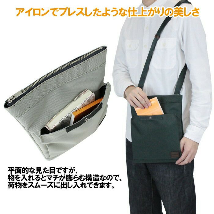 ステッチを最小限に抑えたフロントポケットの仕様が特徴の、きれいめなスタイルに合わせやすいカジュアルシリーズ。 メイン素材は、先染めしたポリエステル糸を平織りにしたオリジナルのジャカード生地を使用。裏面にPVC加工を施すことでハリ感を出し、シルエットを綺麗にするとともに、雨などの水滴が中に染み込みにくくする効果もあります。
