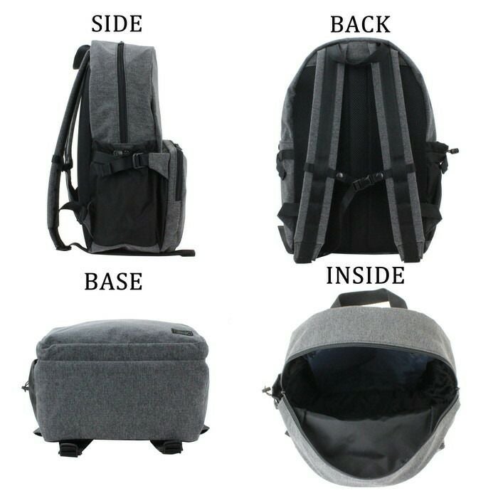 □サイズ:W290/H430/D140mm □重量:645g / 18Litre □素材:表:ナイロンポリエステルヘリンボーン(塩縮加工)(裏面:アクリルコーティング) 裏:ナイロンオックス(裏面:アクリルコーティング) 一部:ナイロンバイオライナー(R)(裏面:アクリルコーティング) □仕様:【メイン:B4サイズ】ファスナーポケット(A4)×1 【本体と外側フロントポケットの間】ボタン留めポケット(A5)×1(ベルクロ留めポケット(B7)×2内蔵) 【外側フロント】ファスナーポケット(B5)×1(オープンポケット(A6)×1、オープンポケット(小物)×1、ペンポケット×1内蔵) 【外側サイド】ボタン留めポケット(小物)×1、ドローコード付ポケット(500mlペットボトル収納可能)×1、マチ幅調整ベルト付 【上部】持ち手×1 【肩ベルト】約46~85cm、チェストストラップ付