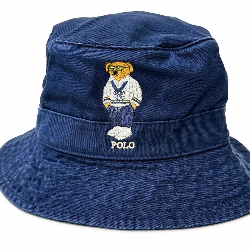Ralph Laurenの人気者、Poloベアの刺繍をフロントにあしらったクラシックなコットンツイルのバケットハット。