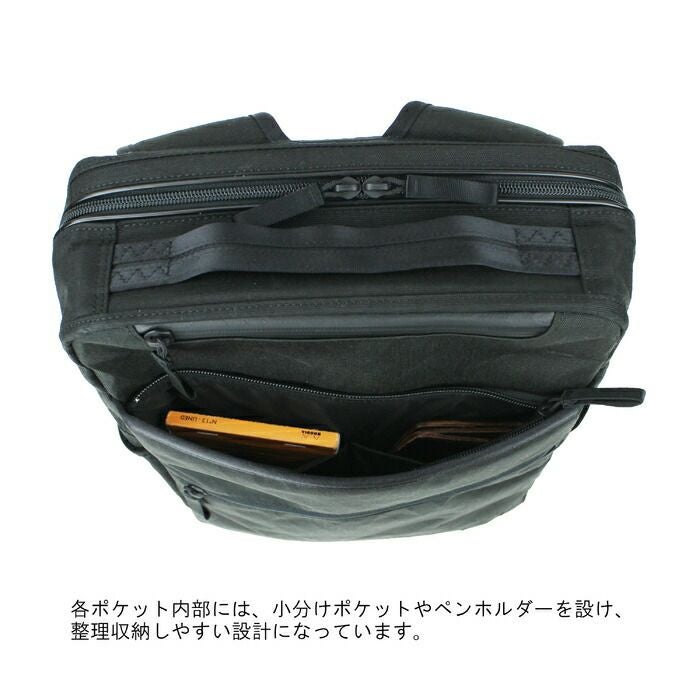 □サイズ:W310/H410/D120mm □重量:900g / 15Litre □素材:表:X-C1000(X-PACコーデュラ(R)ナイロン 一部X-PLY無し) 裏:210Dナイロンオックス(ブラックハイパロンコーティング) 付属:牛ステア(撥水加工) □仕様:【メイン:A4】クッションベルクロポケット(A4、13インチPC)×1、ファスナーポケット(B7)×2 【外側前面】ファスナーポケット(A5)×1(オープンポケット(小物)×2、ペンホルダー×1)、ファスナーポケット(B5)×1(オープンポケット(B7)×2)、メッシュクッションファスナーポケット(B7)×1 【サイド】メッシュギャザーオープンポケット(小物)×2 【上部】持ち手×1 【肩ベルト】約46~94cm