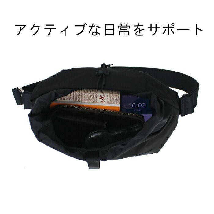□サイズ:W330/H180/D90mm □重量:280g □素材:表:DICROS(R)SOLO(ポリエステルツイル) (裏面:アクリルコーティング)、 裏:ナイロンリップストップ(ポリエステル綿ボンディング)(裏面:アクリルコーティング) ※アイテムによってはアクリルコーティングのみ □仕様:【メイン:A5サイズ】内側メッシュクッション素材 【外側背面】ファスナーポケット(A6)×1 【ショルダーベルト】最長約114cm(本体と合わせるとボディ周り最大で約147cm)