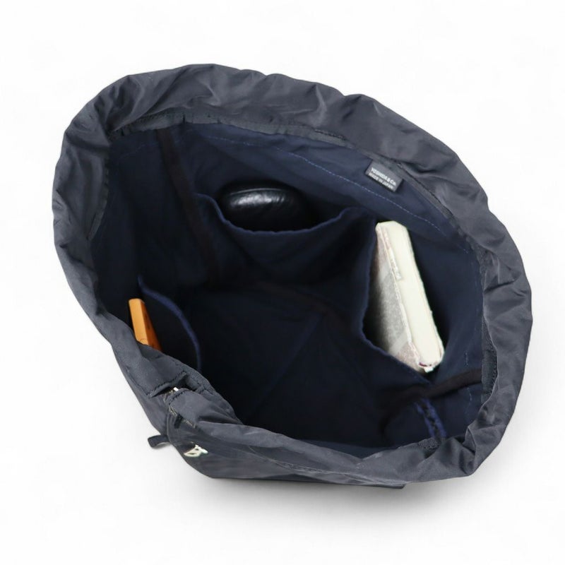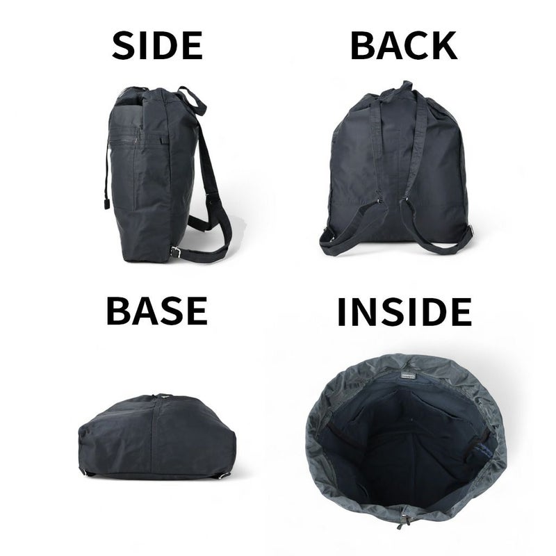 美しく光沢のあるナイロンコットンツイルを採用し、1940~50年代頃のアメリカのツールバッグやワークエプロンをモチーフにしたシリーズです。 ナップサックはデイリーユースに最適な、男女問わずお使いいただけるサイズです。