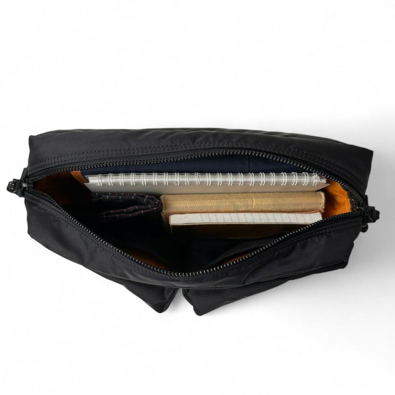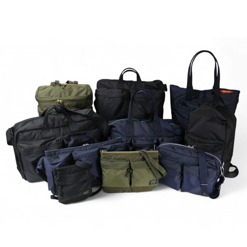 軍用品に見られる偶発的な生地色の差をモチーフにしたミリタリーテイストのシリーズ「PORTER FORCE(フォース)」です。 フロントポケットの生地とカバン本体の生地に微妙な色の差を出し、ロット違いの生地を使用しているように見せていることが最大の特徴です。軍用のウェアやバッグの中には一部分の生地に色の違いがある製品が稀にあり、本シリーズはその偶然生まれたイレギュラーな配色に面白みを感じて製作しました。