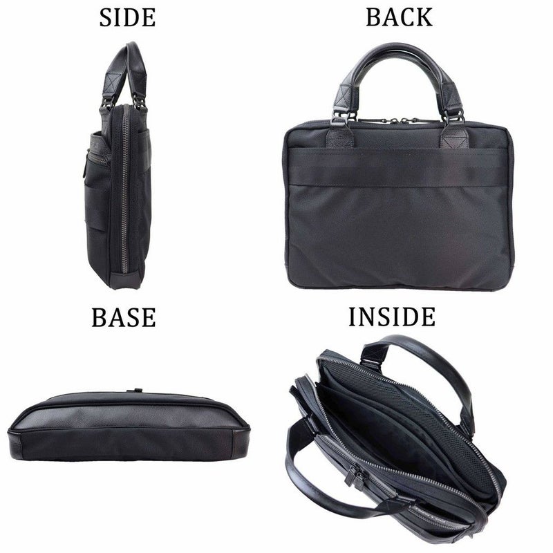 □サイズ:約W360/H260/D50mm※サイズは当店計測サイズとなります。 商品により、若干の個体差が生じます。 ※サイズの表記について □重量:約740g □素材:1680デニールナイロン ウォータープルーフレザー 仕様:【メイン】ファスナー開閉(A4サイズ仕切り付き)[メッシュクッションPCポケット(13インチPC収納可能)×1、オープンポケット(B6)×2] 【前面】ファスナーポケット(B5)[オープンポケット(A6)×2] 【最前面】ファスナーポケット(A5)×1 【背面】オープンポケット(B5)×1 【ハンドル】約35cm 【JANコード:ブラック】4550013169981