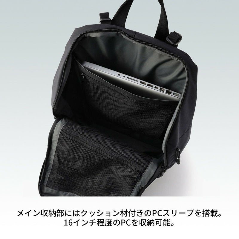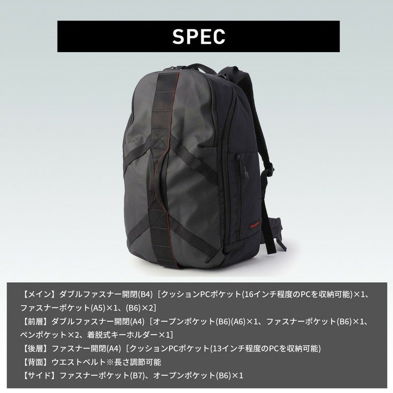 □サイズ:約W350/H530/D190mm※サイズは当店計測サイズとなります。 商品により、若干の個体差が生じます。 ※サイズの表記について □重量:約1350g □素材:840デニールコーデュラエアー 1220×1830デニールポリコーデュラ 仕様:【メイン】ダブルファスナー開閉(B4)[クッションPCポケット(16インチ程度のPCを収納可能)×1、ファスナーポケット(A5)×1、(B6)×2] 【前層】ダブルファスナー開閉(A4)[オープンポケット(B6)(A6)×1、ファスナーポケット(B6)×1、ペンポケット×2、着脱式キーホルダー×1] 【後層】ファスナー開閉(A4)[クッションPCポケット(13インチ程度のPCを収納可能) 【背面】ウエストベルト※長さ調節可能 【サイド】ファスナーポケット(B7)、オープンポケット(B6)×1 【ハンドル】上部×1(長さ約28cm)、前面×1(長さ約16cm) 【肩ベルト】長さ約54~98cm、チェストベルト付き 【JANコード:ブラック】4550013204637