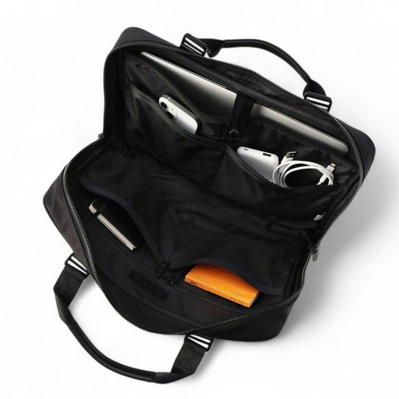 PCと周辺機器、身の回りの小物が収納できる程度の薄マチブリーフは、荷物のミニマム化が進む現代のライフスタイルにフィットするアイテム。 スマートなルックスでありながら、16インチ程度までのPCや書類なども折り曲げることなく収納でき、スマートなルックスと機能性を兼ね備えています。