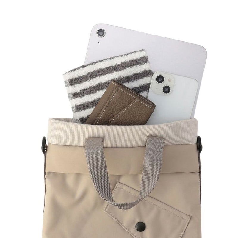 ショルダー・手持ちトートと使い分けが可能な2WAYバッグに、ポケットやリブなどのデザインソースを落とし込みました。
