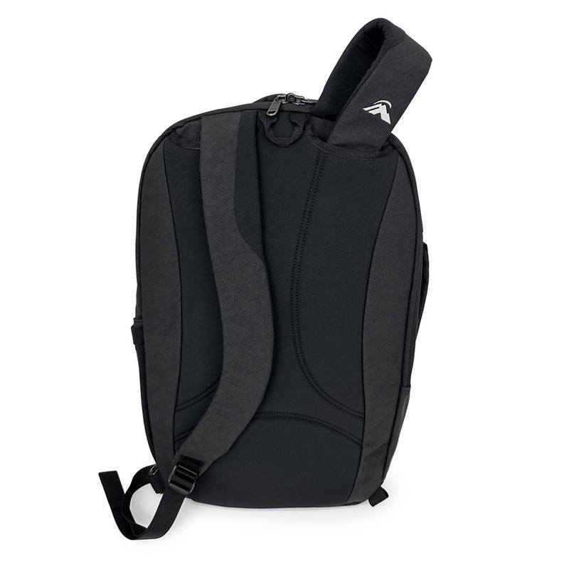常生活からビジネスまで活躍する中型のトラベルバッグです。 素材には、耐久性と耐水性を備えたリサイクルオックスフォードナイロンを採用。メインコンパートメントはスーツケースのようにフラットに開くクラムシェル型の開閉式で、荷物をスムーズに収納できます。15インチまでのノートPC対応ラップトップスリーブ付き背面コンパートを装備。メインコンパートメントと背面コンパートメントには、セキュリティに配慮したロッカブルジッパ―を採用しています。フロントのファスナーポケットは、クレジットカードなどのスキミングを防げるRFIDブロック機能付き。 サイドにもグラブハンドルを備え、ブリーフケースのように使用できます。機内持ち込みが可能な容量23Lで、日常から身軽な出張まで幅広く対応します。 ・RFIDブロック生地は、RFID対応カードやデバイスの不正なスキャンやスキミングを防止するように設計されていますが、電子盗難や詐欺に対する絶対的な保護を保証するセキュリティ対策ではありません。