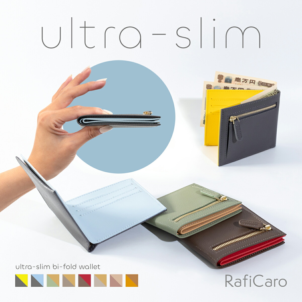上品なバイカラーが印象的なRafiCaroの薄型ミニ財布です。