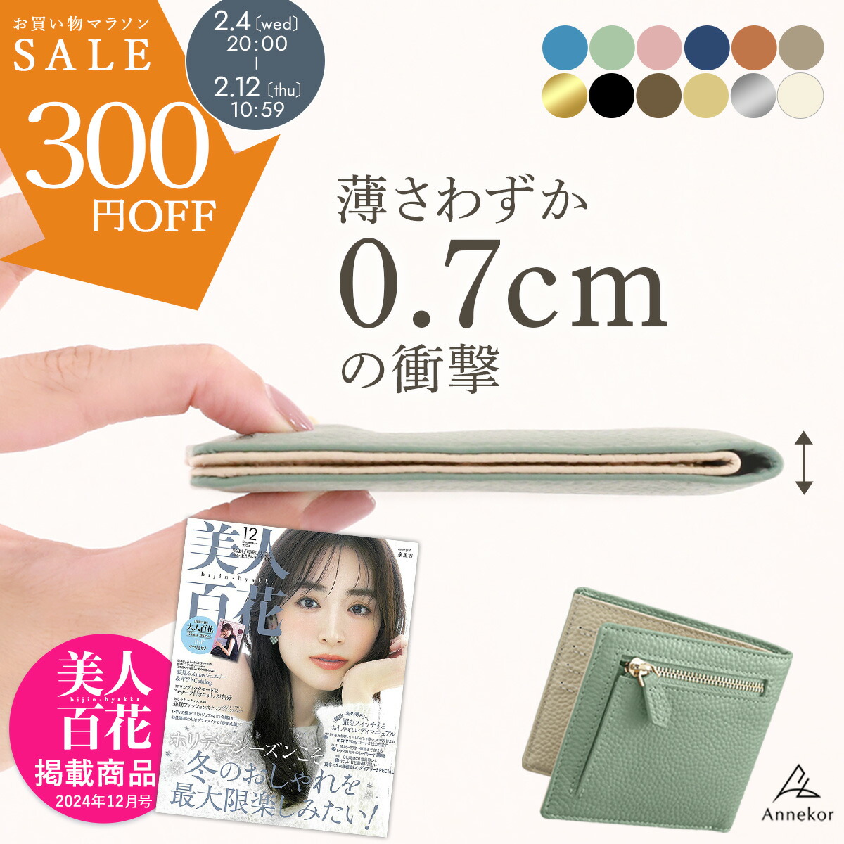 アンコールジャパン 二つ折り 薄型 ミニ財布