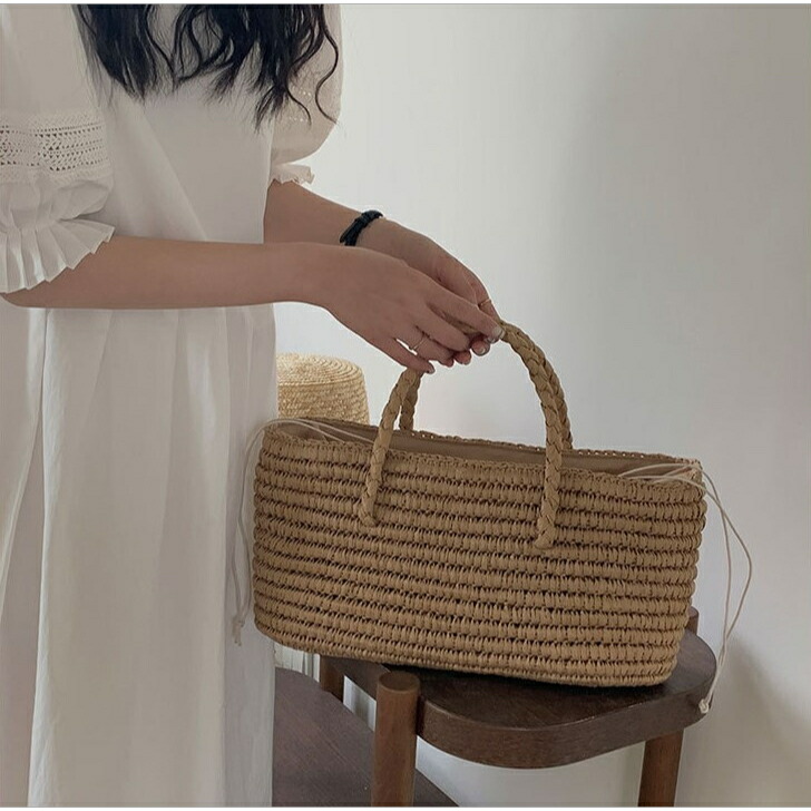 自然な風合いが魅力の草編み(ストロー)素材を使用した、上品さ際立つかごバッグです。